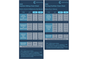 IMPORTANT NOTE: Using any inpatient billing cheat sheet from 2020, 2021, or 2022 will result in costly errors, denials, coding inefficiency, audit risks, lower peer rankings, and lost revenue.